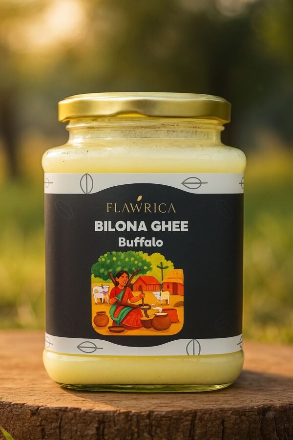 Flawrica Bilona Buffalo Ghee is crafted traditionally using the Bilona method, where cultured buffalo curd is hand-churned to produce pure, wholesome ghee. Naturally rich in calcium, proteins, and essential fatty acids, this ghee is denser and more nourishing than cow ghee, offering a creamy texture and bold flavor. Ideal for those seeking strength, stamina, and deep nourishment, it is perfect for cooking, traditional sweets, or everyday meals. With its authentic taste and nutrient-rich profile, Bilona Buffalo Ghee carries forward the heritage of pure, handcrafted goodness.