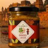 Banarasi Lahsun Achar – a bold and flavorful garlic pickle, infused with Banaras’s authentic spices and slow-matured in mustard oil for a rich, zesty taste.”